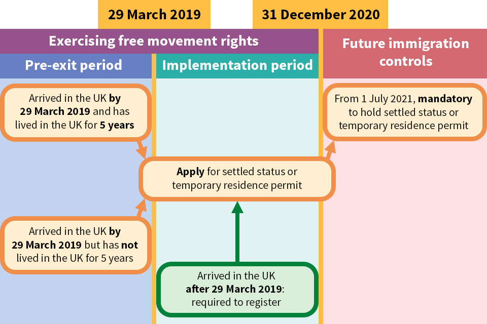 Source : Apply to the EU Settlement Scheme (settled and pre-settled status): Overview - GOV.UK (Attention: la version en français n’est pas actualisée au 26 avril 2018 en ce qui concerne la date limite du 31 décembre 2020)!